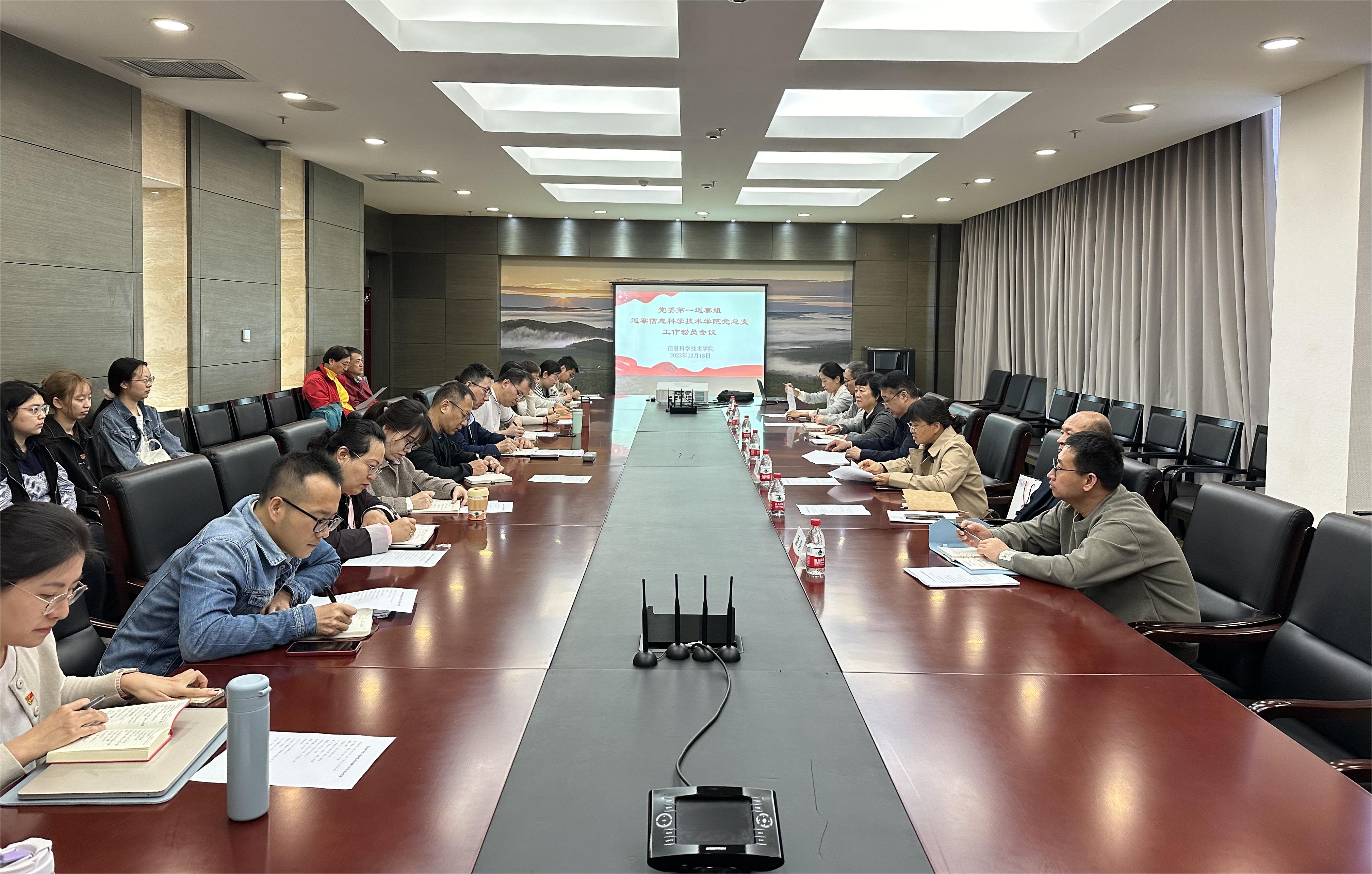 2023年10月18日上午,根据学校党委关于巡察工作统一部署,党委第一巡察组巡察澳门网投官方网站党总支工作动员会在澳门网投官方网站召开。学校党委副书记、纪委书记胡志钢,第一巡察组组长张荟霖、副组长潘华珍,第一巡察组成员高雁鸣、潘亮、相忠群,党委巡察办副主任杨光,信科学院领导班子成员、全体教师和学生党员代表参加会议。会议由信科学院院长蔡连侨主持。