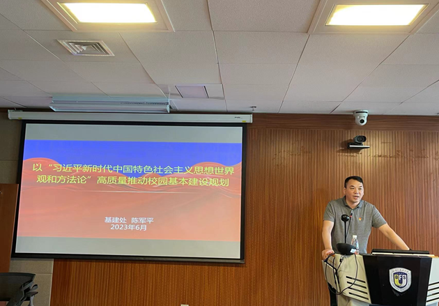 陈军平老师党课的主题是“以‘习近平新时代中国特色社会主义思想世界观和方法论’高质量推动校园基本建设规划”,首先从“六个必须坚持”出发阐述了政治理论、工作学习中必须遵循的科学世界观和方法论,然后结合理论指导实践的视角,介绍了学校“十四五”基本建设规划的情况、无障碍校园建设规划以及实施校园更新改造的思考,引导大家了解校史校情,做到知校爱校。最后,陈军平老师还鼓励学院同学要把握学科优势,学深悟透习近平新时代中国特色社会主义思想世界观和方法论内涵,努力成为“有家国情怀、有全球视野、有专业本领”的复合型人才。