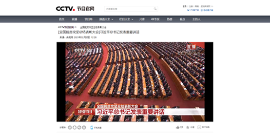 2021年2月25日上午,全国脱贫攻坚总结表彰大会在北京人民大会堂隆重举行,习近平总书记庄严宣告:“我国脱贫攻坚战取得了全面胜利”。