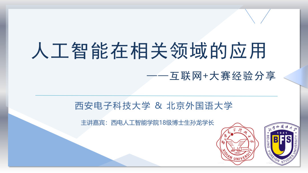 6月7日晚,由我院和西安电子科技大学人工智能学院联合举办的学术分享讲座在网络平台成功举行。讲座邀请到了来自西电人工智能学院18级博士生孙龙,做了题为“人工智能在相关领域的应用——互联网+大赛经验分享”的主题讲座。