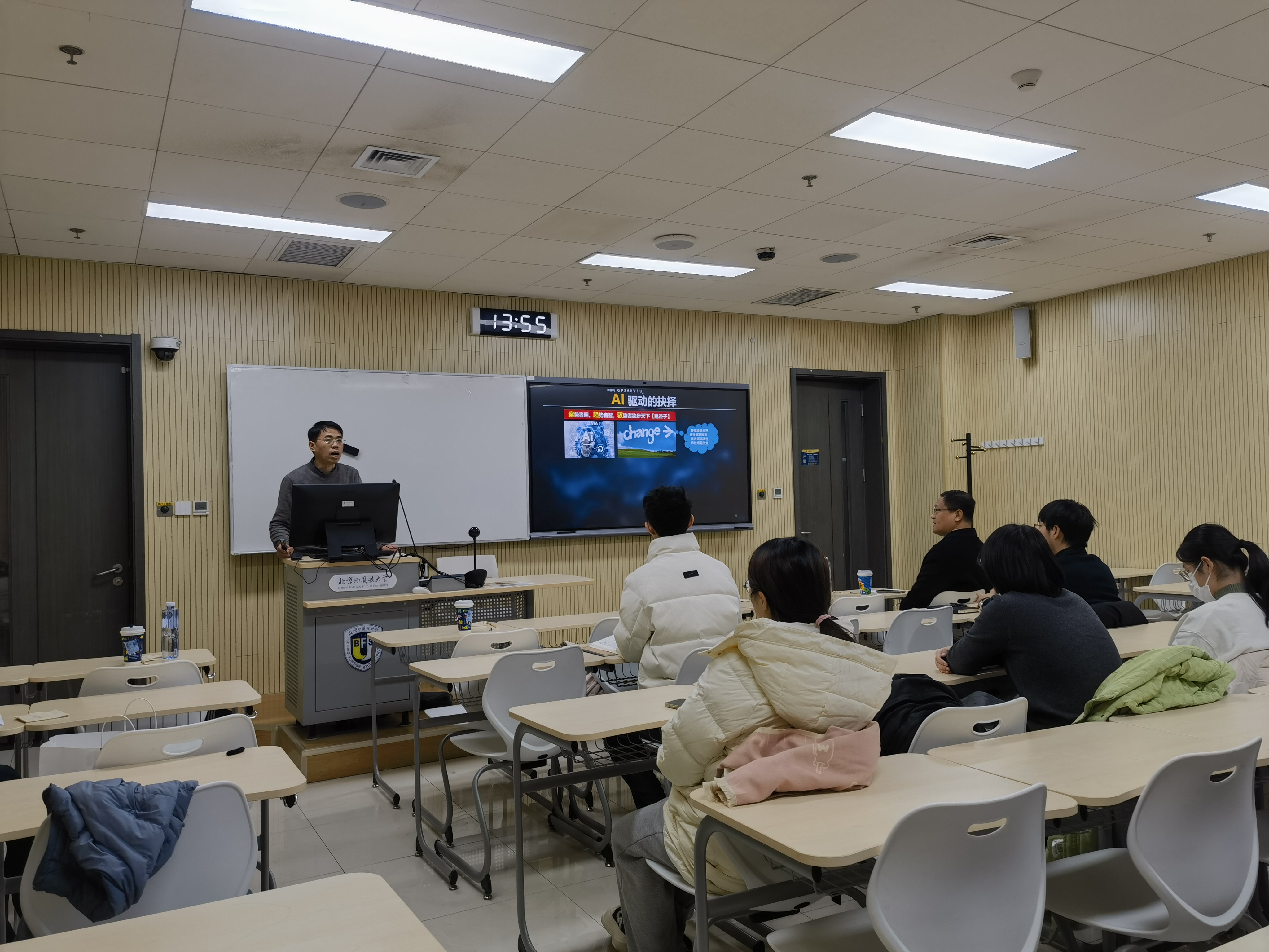 最后的互动提问环节气氛热烈,学生就“水下压强对机器鱼运动的影响”提出疑问,喻教授从材料与控制角度予以细致解答。张小雨老师则对仿生机器飞鱼的跨介质入水细节展开探讨,喻教授结合流体力学与运动规划进行了深入分析。