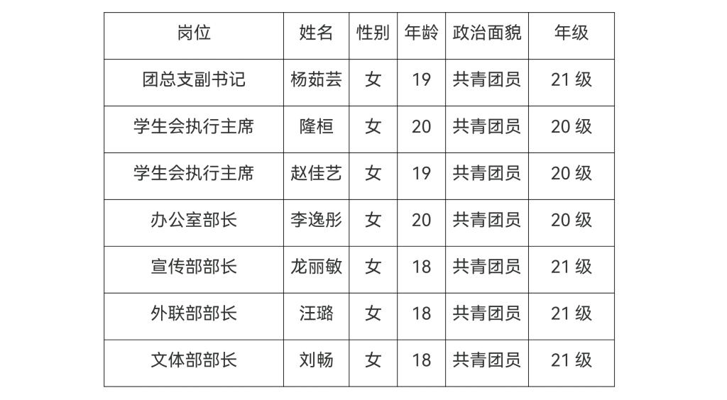 信科学院团总支学生会第四届主席团和部长团名单